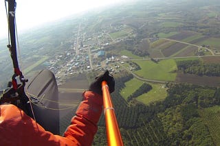 2005年9月4日是我的第一次用飛行傘起飛…到現在也過了很多年,我不是特別厲害,但也是個合格的越野飛行員。飛行傘是目前我玩最久的一項運動。從事這項運動這麼久,我有摔過,初學時起飛失敗跌倒,在地上滾、掉到草叢竹林樹上的次數絕對比你想像的多…