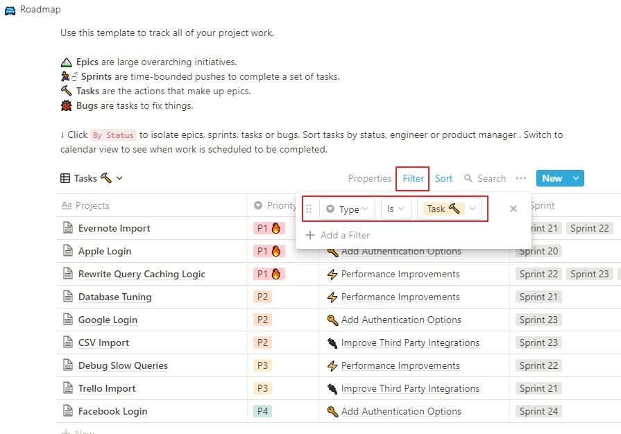 我為了能方便管理工作,便將所有的Trello任務,完全轉移到Notion筆記,使用產品管理(Product Management) 的RoadMap模板,也就是看板管理的模板。