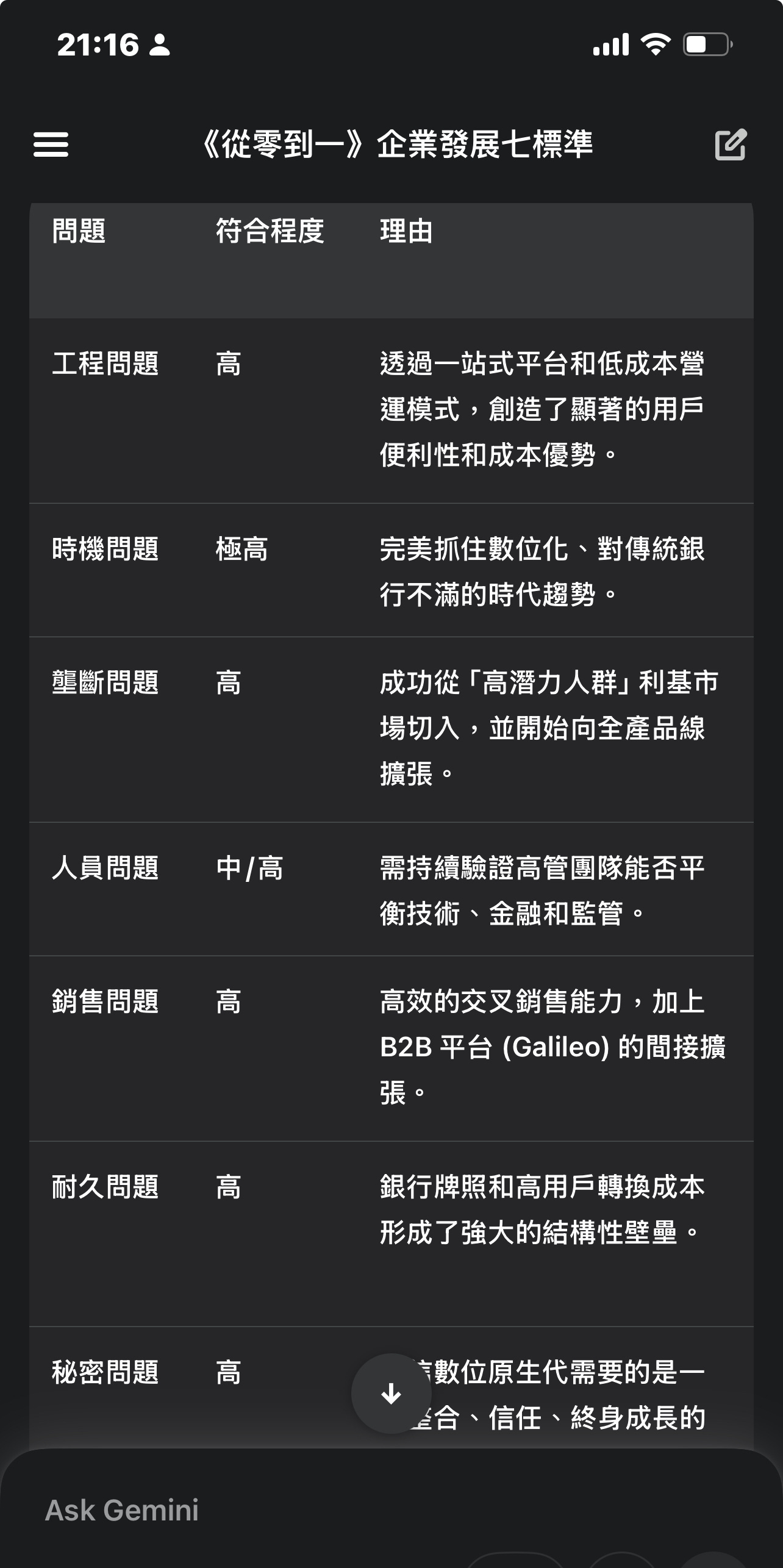 我把Gemini問到覺得很煩之後,他給我一個只要輸入股票代碼,就幫我分析這間公司是否符合Peter Thiel七項標準的工具。