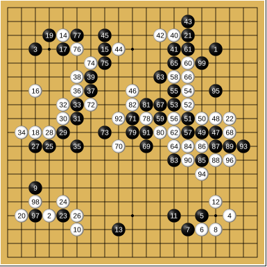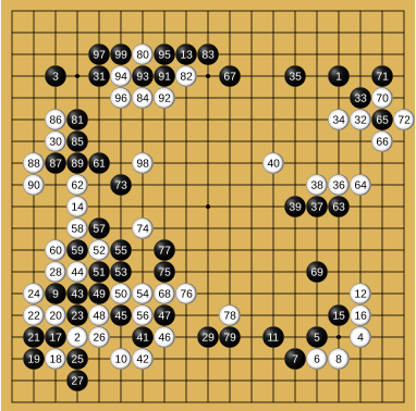 AlphaGo 直到第87手才發現自己第79手錯了,AlphaGo開始出現失誤,勝率急速下降。