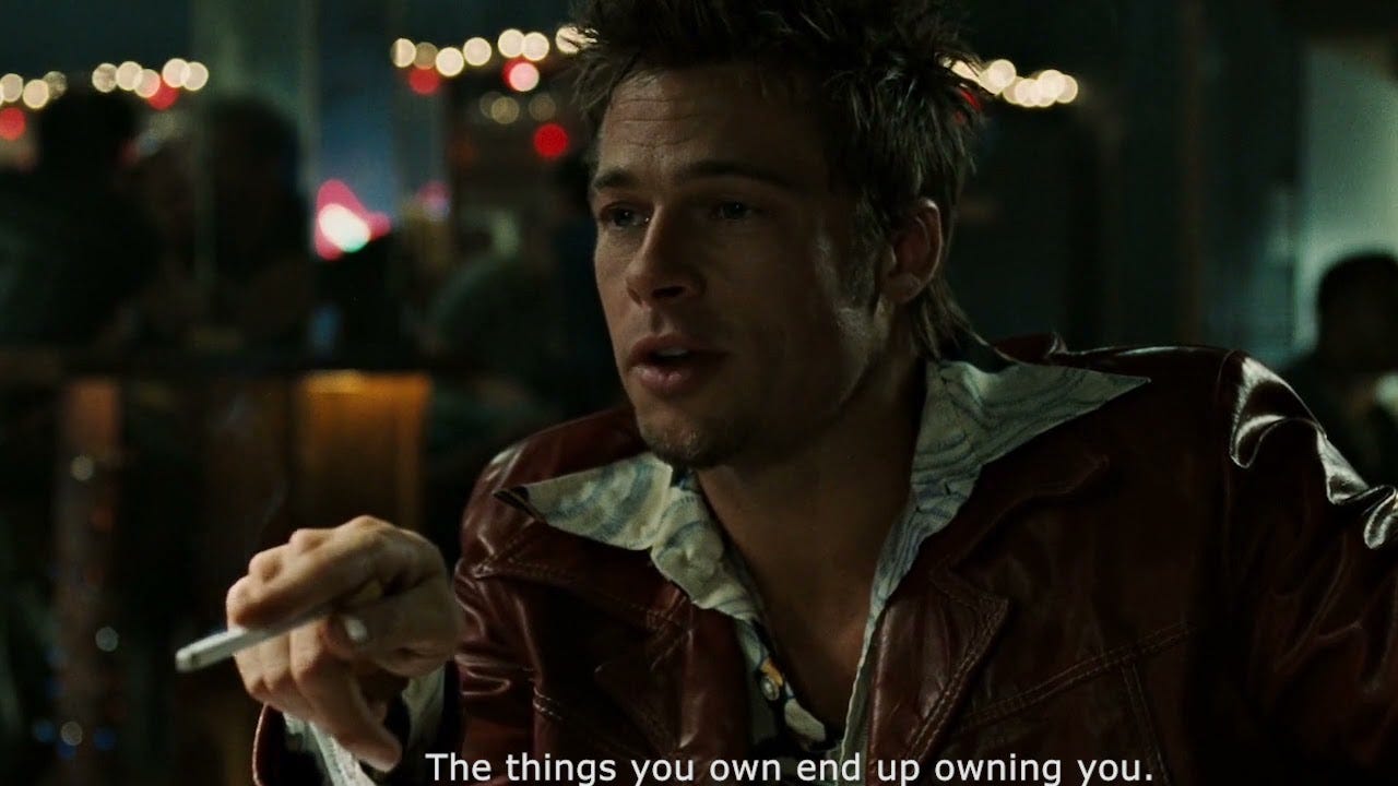 「你擁有的物品,最後會奴役你。(The things you own end up owning you.)」